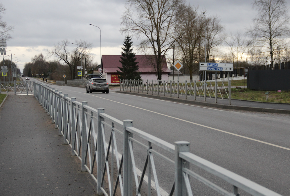 При устройстве тротуаров были учтены условия жилой застройки и выделено два участка общей протяженностью 686 м. Пешеходные дорожки появились с двух сторон трассы, на подходах к переходам, а также к остановочным пунктам. Вдоль нерегулируемой зебры возле образовательных учреждений установлено пешеходное ограждение, выполнено устройство поперечных шумовых полос, смонтированы знаки и обновлена разметка.
