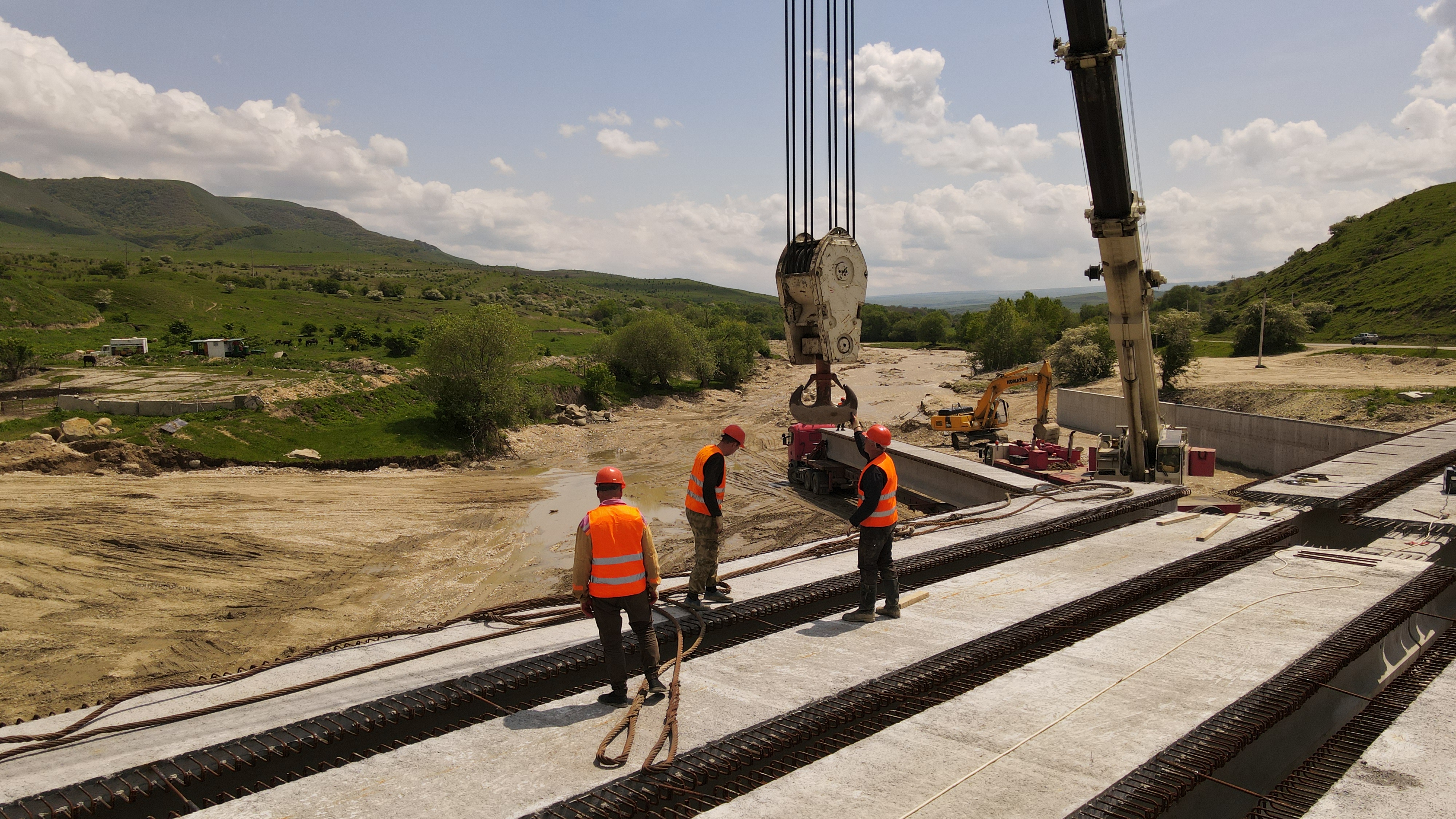 Благодаря национальному проекту «Безопасные качественные дороги» в Карачаево-Черкесии продолжается реконструкция моста через реку Джегуту, расположенного на трассе Усть-Джегута – Терезе. Специалисты установили последнюю из 15 балок пролетных строений.