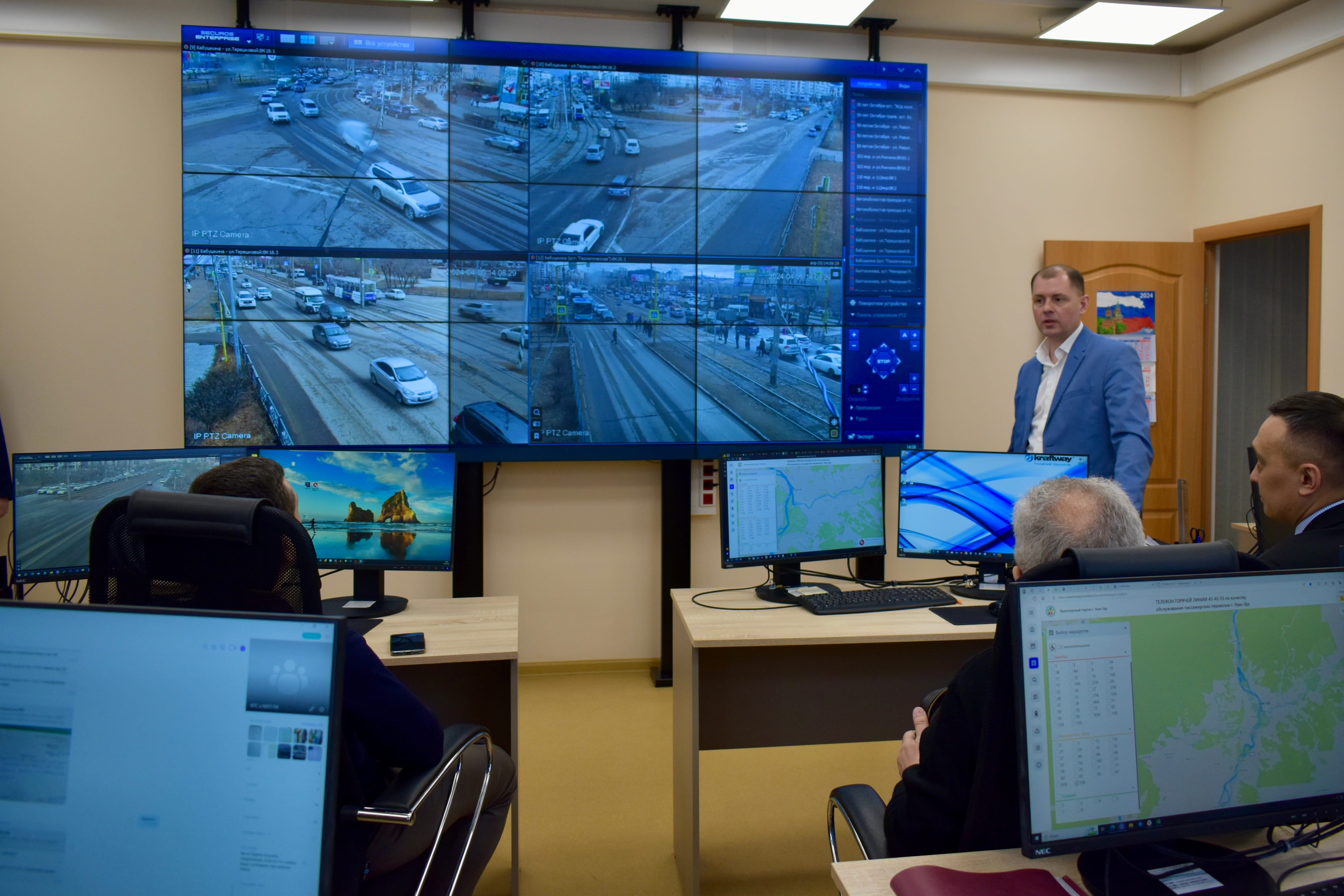 На данный момент в Улан-Удэ модернизированы 77 светофоров, смонтированы 133 обзорных камеры и 209 детекторов. В ближайшие два года планируется создание подсистемы видеонаблюдения и детектирования ДТП, чрезвычайных ситуаций, установка модуля управления дорожными работами и многое другое. Уже сейчас ведется анализ параметров транспортного потока в городе ― этим занимаются операторы Центра. В круглосуточном режиме они отвечают на обращения горожан, контролируют бесперебойную работу ГЛОНАСС на общественном транспорте и не только.
