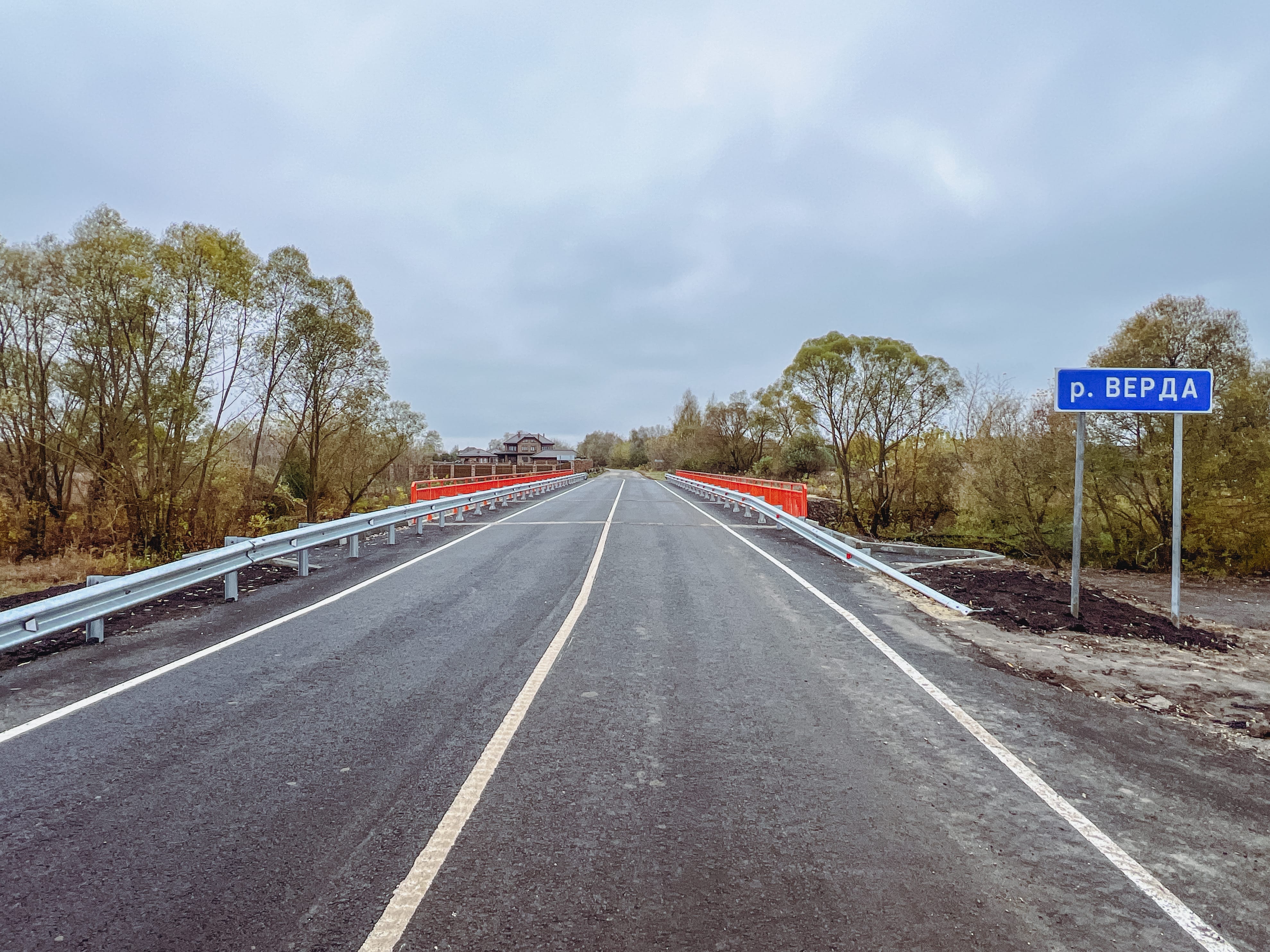 В Скопинском районе Рязанской области благодаря национальному проекту «Безопасные качественные дороги» привели в нормативное состояние железобетонный мост через реку Верду. Протяженность объекта составляет 54,6 пог. м.